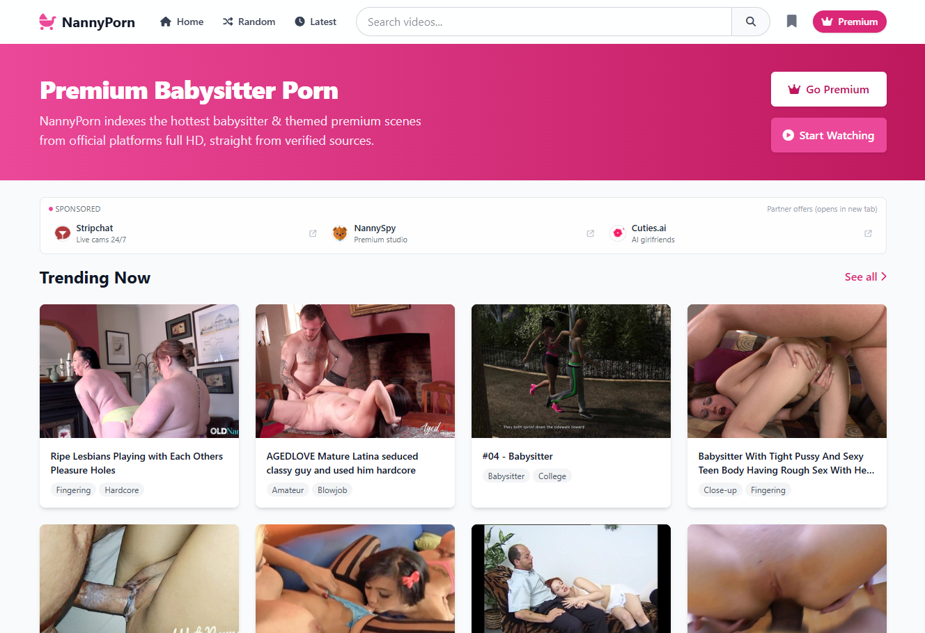 Nanny Porn is a brand-new free niche tube dedicated entirely to adult babysitter and nanny taboo roleplay. With a modern, polished interface and a tight focus on this specific fantasy, it feels like a themed fan hub rather than a generic all-in-one tube. All content is clearly presented as consensual adult roleplay.